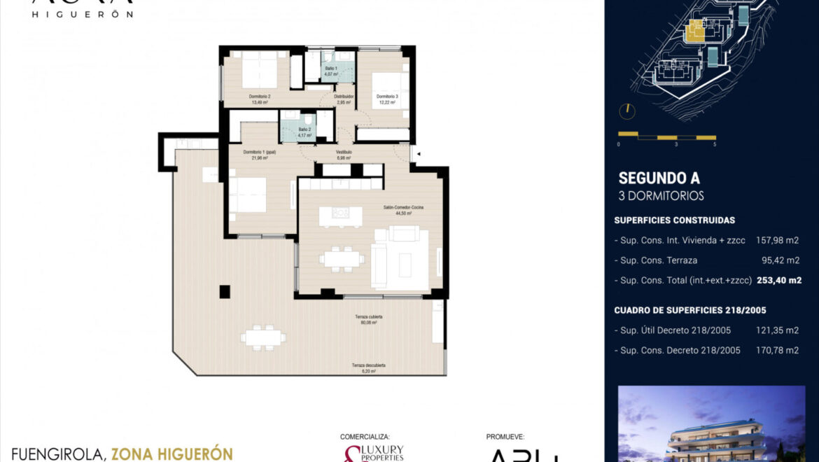Presentamos esta espectacular vivienda de 3 dormitorios y 2 baños, construida con primeras calidades, ubicada en uno de los tres edificios icónicos de diseño vanguardista que conforman AURA HIGUERÓN FASE 2, en C/ EVA, en la prestigiosa zona de Higuerón, entre Fuengirola y Benalmádena.
