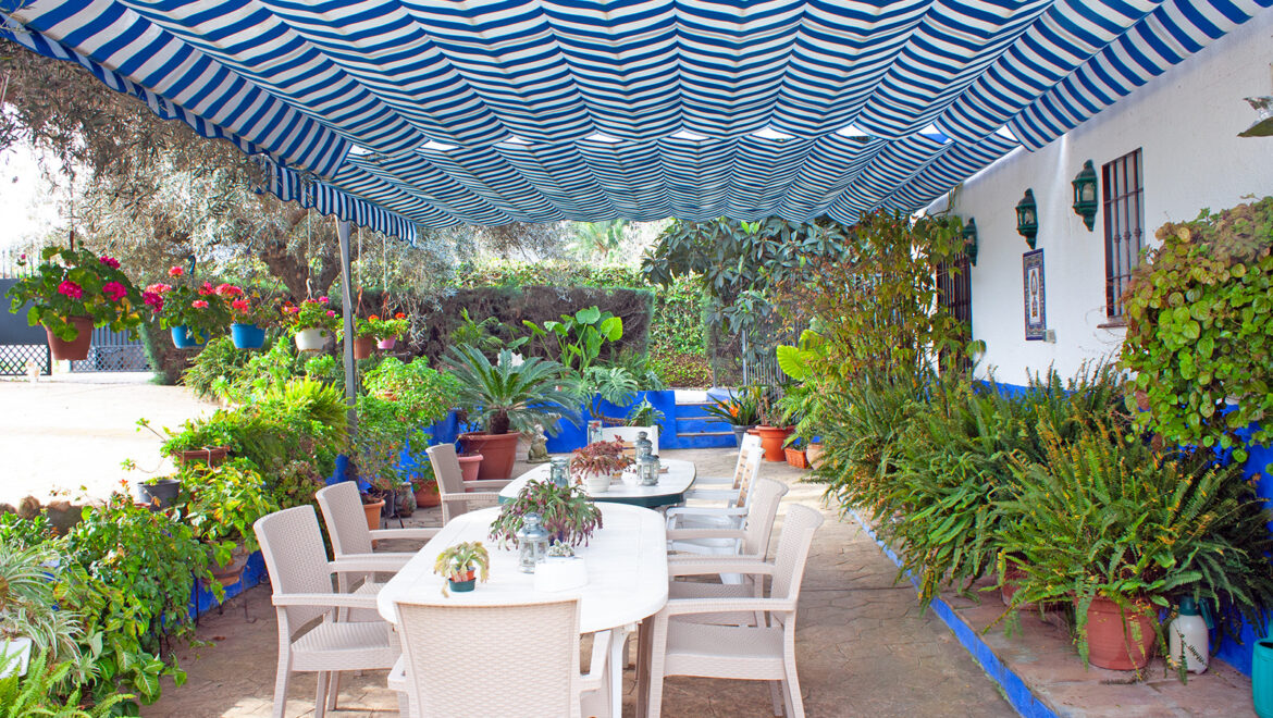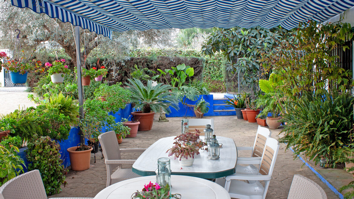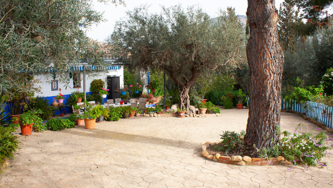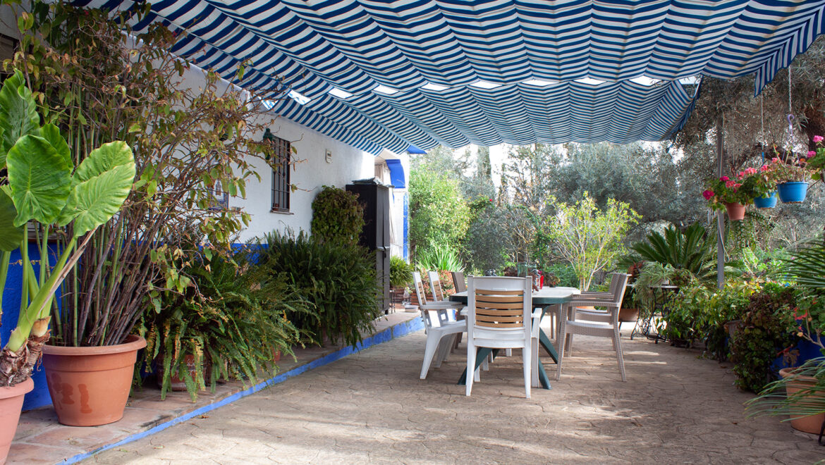 En el exterior, la finca seduce por su armonía: piscina privada, zona chill out y cochera cubierta, todo enmarcado por jardines maduros, rincones llenos de carácter y vistas abiertas al campo andaluz.