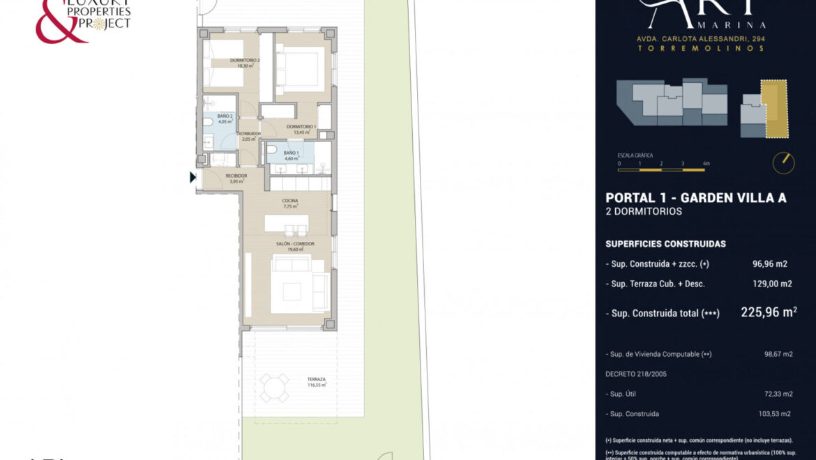 Esta elegante Garden Villa A (planta baja) pertenece al exclusivo residencial Art Marina, un proyecto boutique situado en Avenida Carlota Alessandri, 294 (Torremolinos), a escasos minutos de La Carihuela y Puerto Marina.